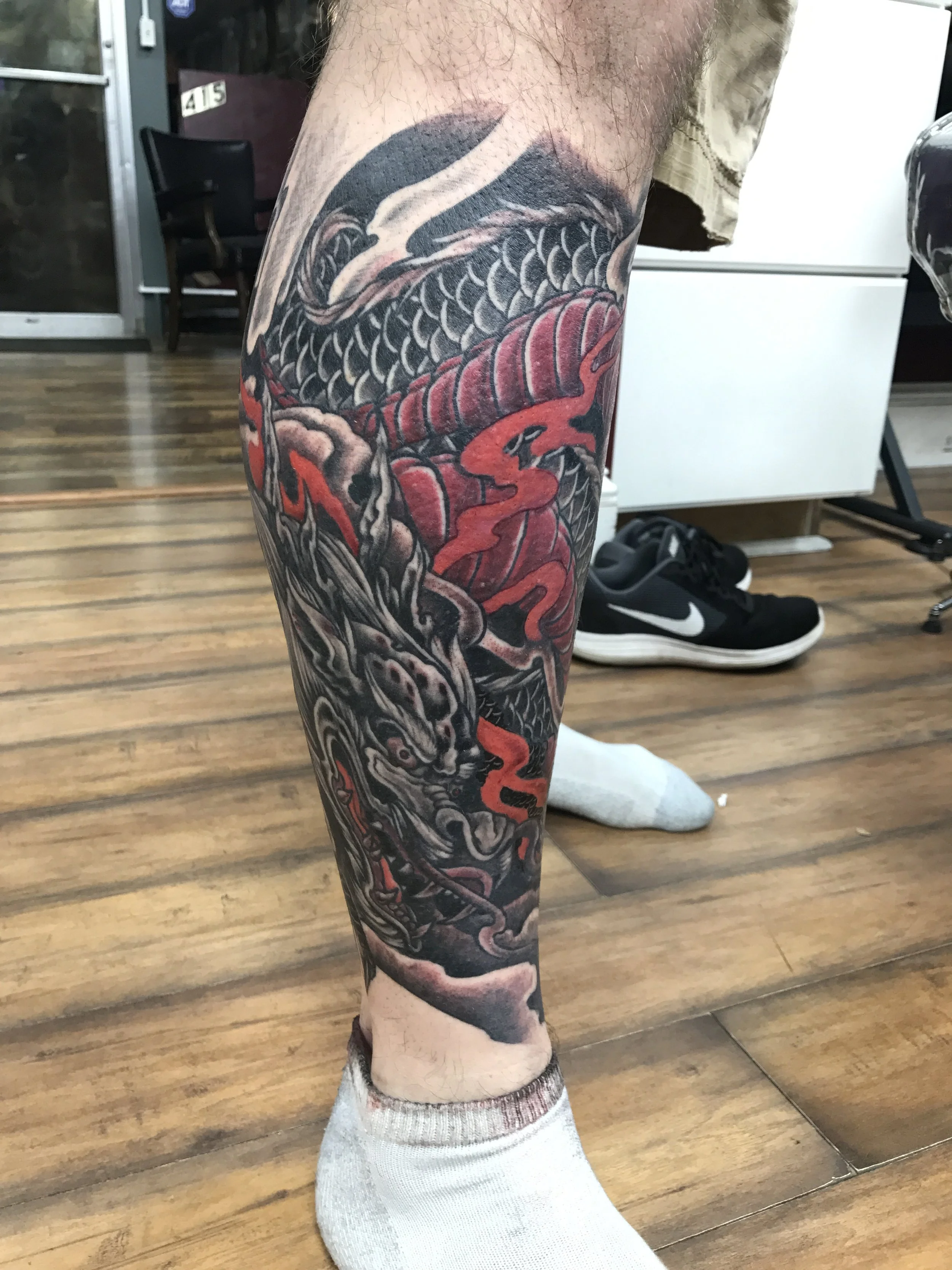 Having been interested in art since a young age Robert has become familiar with many styles of artwork and art mediums. Realistic artwork and tattoos are what Robert excels in most. Other styles Robert does well and likes to do are New School, Neo Traditional, Bio-Organic and Japanese/Chinese. Robert Is fluent in both Black and Grey, and Color Tattoos. Robert is often booked out several months at anytime and due to the high volume of work is mostly giving his time to larger work, like sleeves and half sleeves etc.